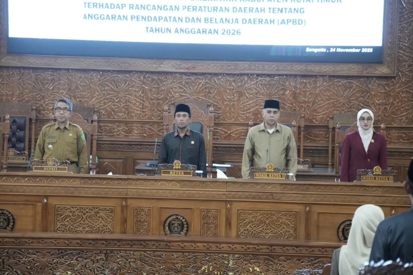 KEMBARA TIMUR – Belanja Daerah Kutai Timur (Kutim) pada Tahun Anggaran 2026 diproyeksikan mencapai Rp5,711 triliun. Angka tersebut disampaikan Bupati Kutim, Ardiansyah Sulaiman, saat membacakan Nota Keuangan RAPBD 2026 dalam rapat paripurna DPRD Kutim, Senin (24/11/2025) malam.