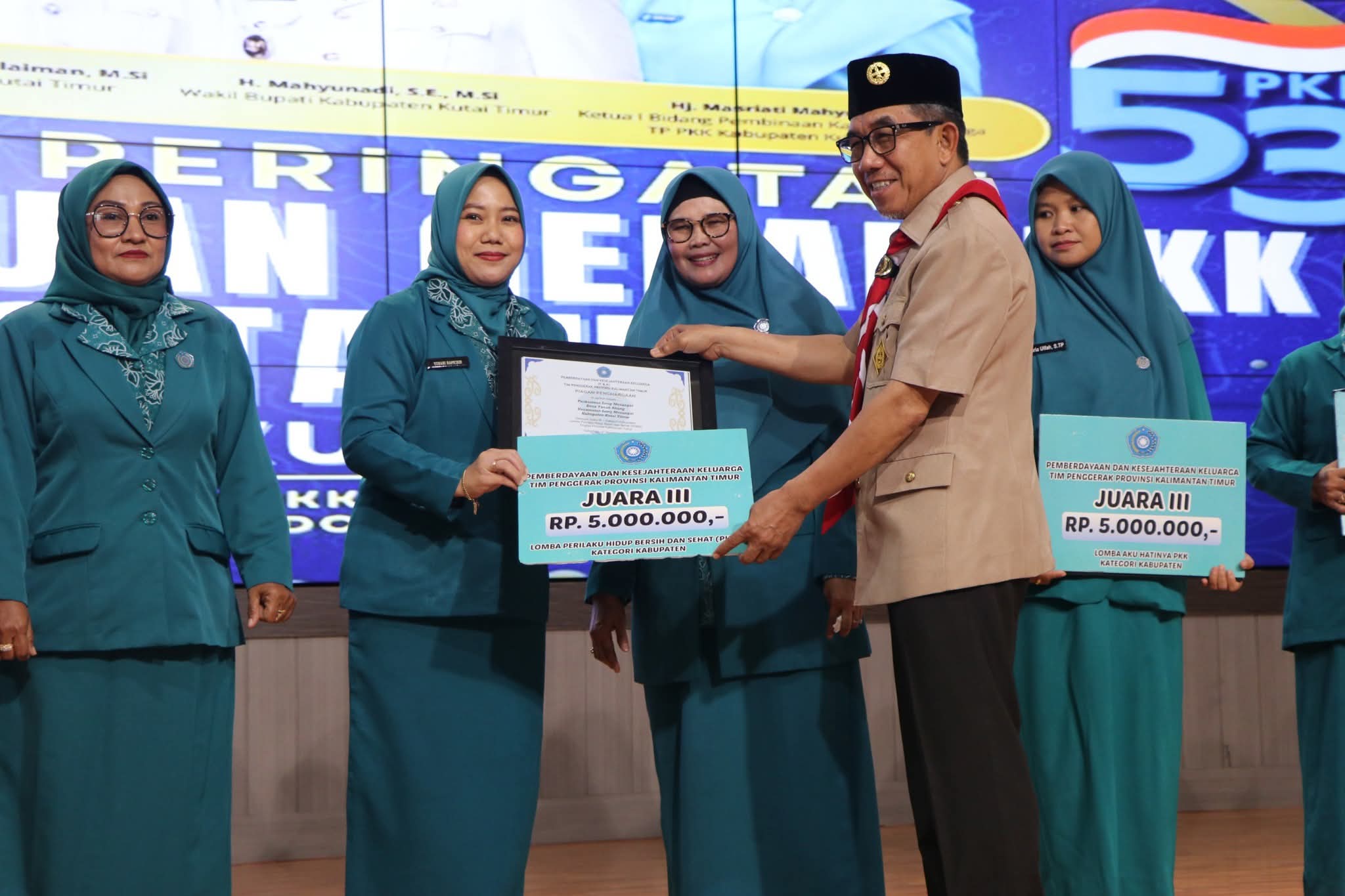 Acara yang turut dihadiri unsur Forkopimda, Kepala Perangkat Daerah, organisasi wanita, Ketua TP-PKK Kutim Ny. Siti Robiah, serta para kader PKK dari berbagai kecamatan dan desa ini menjadi momentum konsolidasi gerakan pemberdayaan keluarga di Kutim.