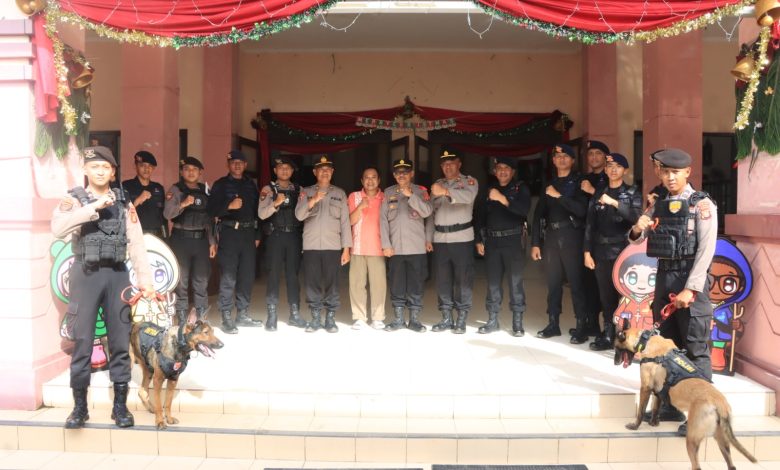 KEMBARA TIMUR, SANGATTA – Standar pengamanan tinggi diterapkan Kepolisian Resor (Polres) Kutai Timur dalam mengamankan perayaan Natal 2025. Tidak hanya mengandalkan personel berseragam dan peralatan deteksi logam (metal detector), polisi juga menerjunkan Unit K-9 (anjing pelacak) dari Direktorat Samapta Polda Kalimantan Timur untuk melakukan sterilisasi lokasi ibadah.